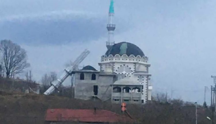 Akyazı Merkez Yenimahalle’de yapımı devam eden caminin minaresi fırtına nedeniyle yıkıldı.