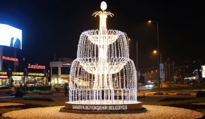 Büyükşehir Belediyesi, Serdivan’ın kalbinde bulunan tüm ana caddelerin ortasındaki kavşağa şelale motifli aydınlatma uygulamasıyla bölgeye yakışır bir görsellik kattı.