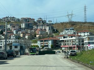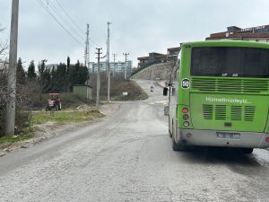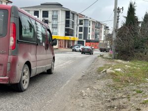 kaldırımı yok. Belediye otobüslerinin ve kırmızı Serdivan dolmuşlarının kullandığı bu yolda