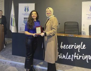 Konuklara etkinliğin sonunda SUBÜ Kariyer Planlama ve İnsan Kaynakları Uygulama ve Araştırma Merkezi’nden Doç. Dr. Mustafa