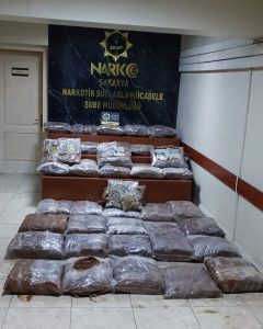 Sakarya dahil 3 ilde düzenlenen uyuşturucu operasyonunda piyasa değeri 111 milyon lira olan 176 kilogram skunk ele geçirildi. Sakarya İl Emniyet Müdürlüğü’nce uyuşturucu madde ticareti ve kullanımının engellenmesine yönelik yapılan çalışmalar kapsamında; Diyarbakır’dan uyuşturucu madde getirecekleri tespit edilen şahıslar takibe alındı.   Teknik ve fiziki takibin ardından Sakarya, Diyarbakır  ve İstanbul’da gerçekleştirilen operasyonlarda 4 şüpheli yakalandı.   Şahısların kullanmış olduğu  araçta ve adreslerinde yapılan aramalarda , el yapımı kil ürünleri içerisine gizlenmiş şekilde piyasa değeri yaklaşık 111 milyon TL olan  176 kilogram Skunk, 2 kilo 500 gram Takoz esrar ve 2 adet hassas terazi ele geçirildi.