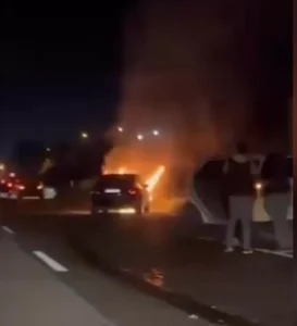 D-100 karayolunda iki aracın karıştığı kazada araçların biri alev alev yandı. Kazada 2 kişi yaralandı.